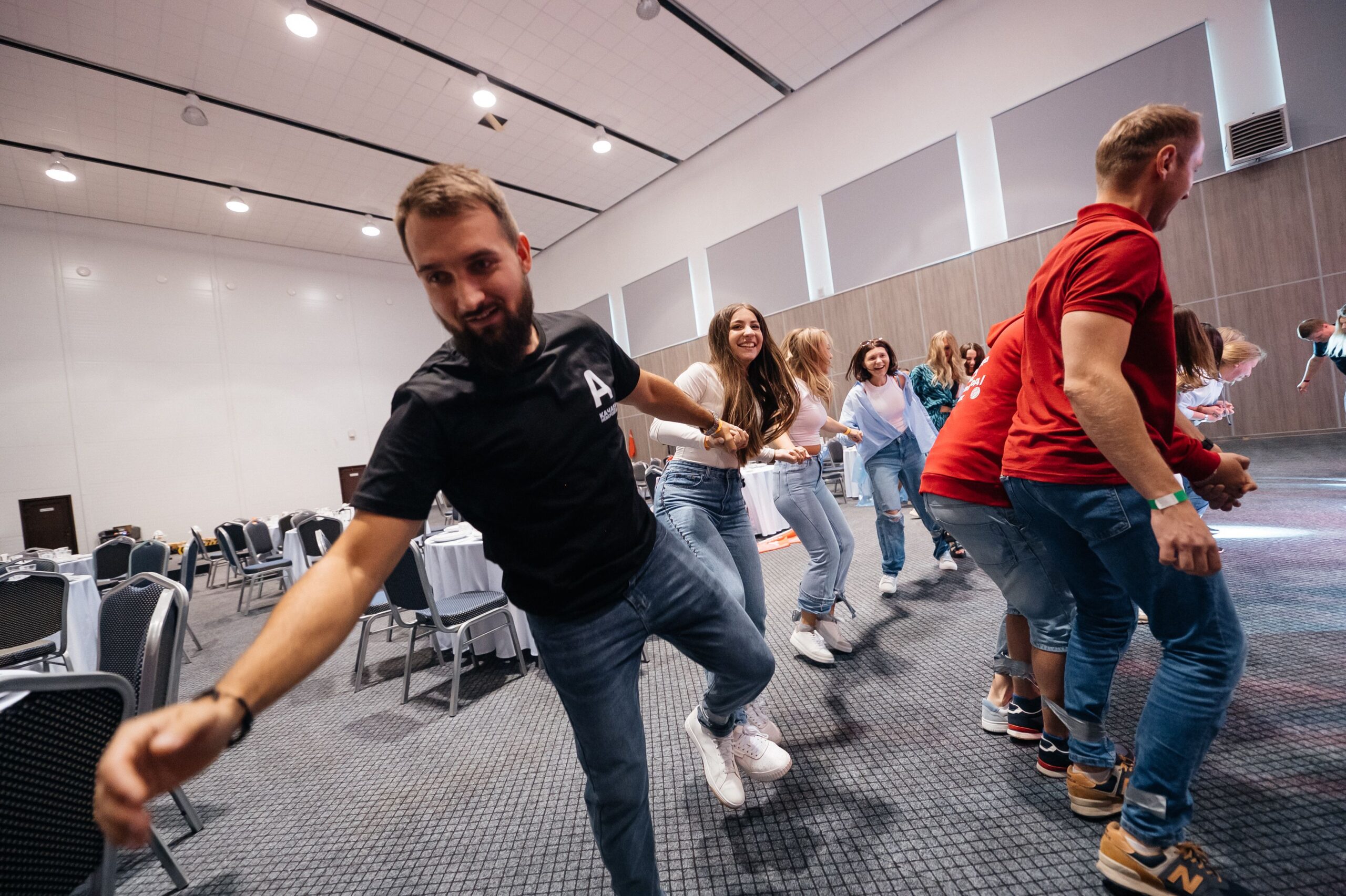 Мы начали с веселой разминки и формирования 8-ми команд, каждой из которых был присвоен свой цвет. Команды разработали уникальные названия, слоганы, фирменные движения и выбрали своих капитанов. После забавного представления команд мы поделили их на две группы.